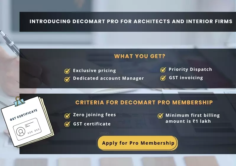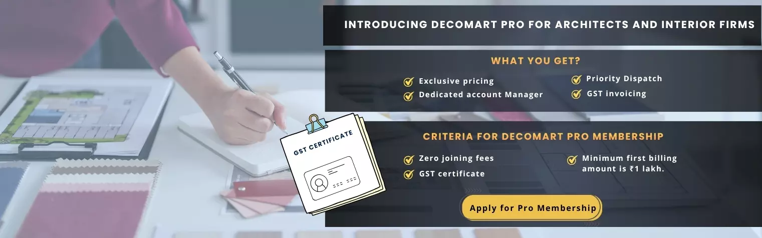 π All Over India Delivery Except Bulky or Delicate Products β Exclusive discounts for Architects & Interior firms. Upgrade to Decomart Pro account with free of costπ All Over India Delivery Except Bulky or Delicate Products β Exclusive discounts for Architects & Interior firms. Upgrade to Decomart Pro account with free of cost